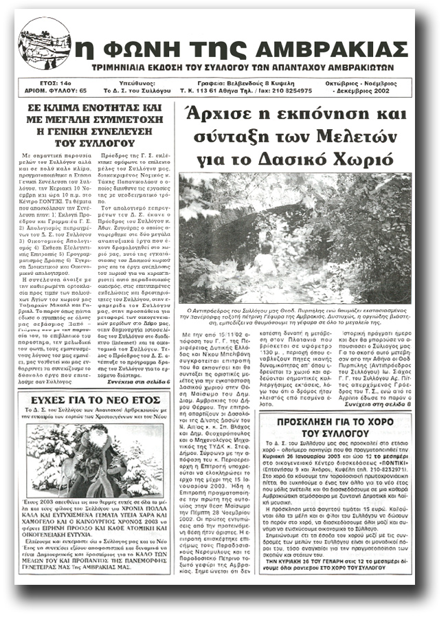Η Φωνή της Αμβρακιάς Οκτώβριος - Δεκέμβριος 2002